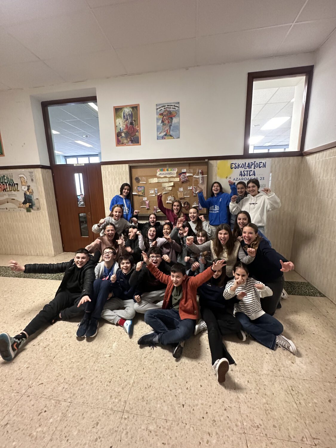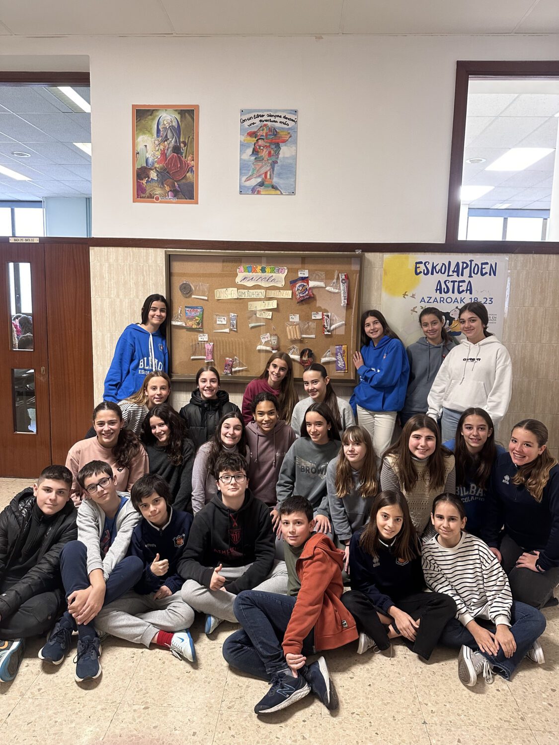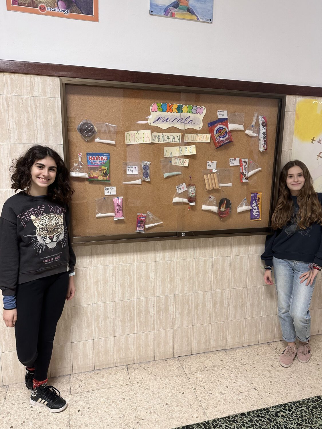 DBH 1eko ongizate fisiko eta emozionalean, azukrearen murala egiten amaitu dugu urtea. Egun batzuk izan dira beste modu batean ikasten, eta, gainera, besteengan kontzientzia sortzen saiatu gara, gure eguneroko elikagai batzuetan azukre kantitate horiek ikustea zein zirraragarria den ikusita. Lehenengo solairuan bisita egitera gonbidatzen zaituztegu!!