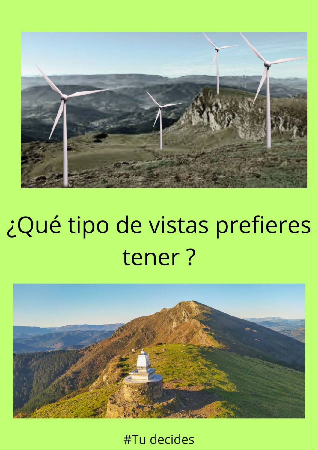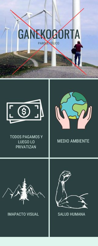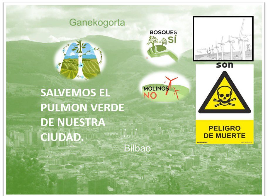 Multinazional handien kontura eta herritarren bizkar haize-errotak jartzea mehatxu bat da biztanleen eta izaki bizidunen bizitzaren kalitaterako eta iraunkortasunerako. Gainera, eztabaida publikorik gabe eta Pagasarri-Ganekogorta bezalako inguruneetan planifikatzen bada, mehatxua oso larria da, eta dorre elektriko erraldoiak jartzeagatik, bidezidorrak eta mendi-hegalak suntsitzeagatik (Biderdi, adibidez) dagoeneko gertatzen ari den narriadurarekin bat egiten du.