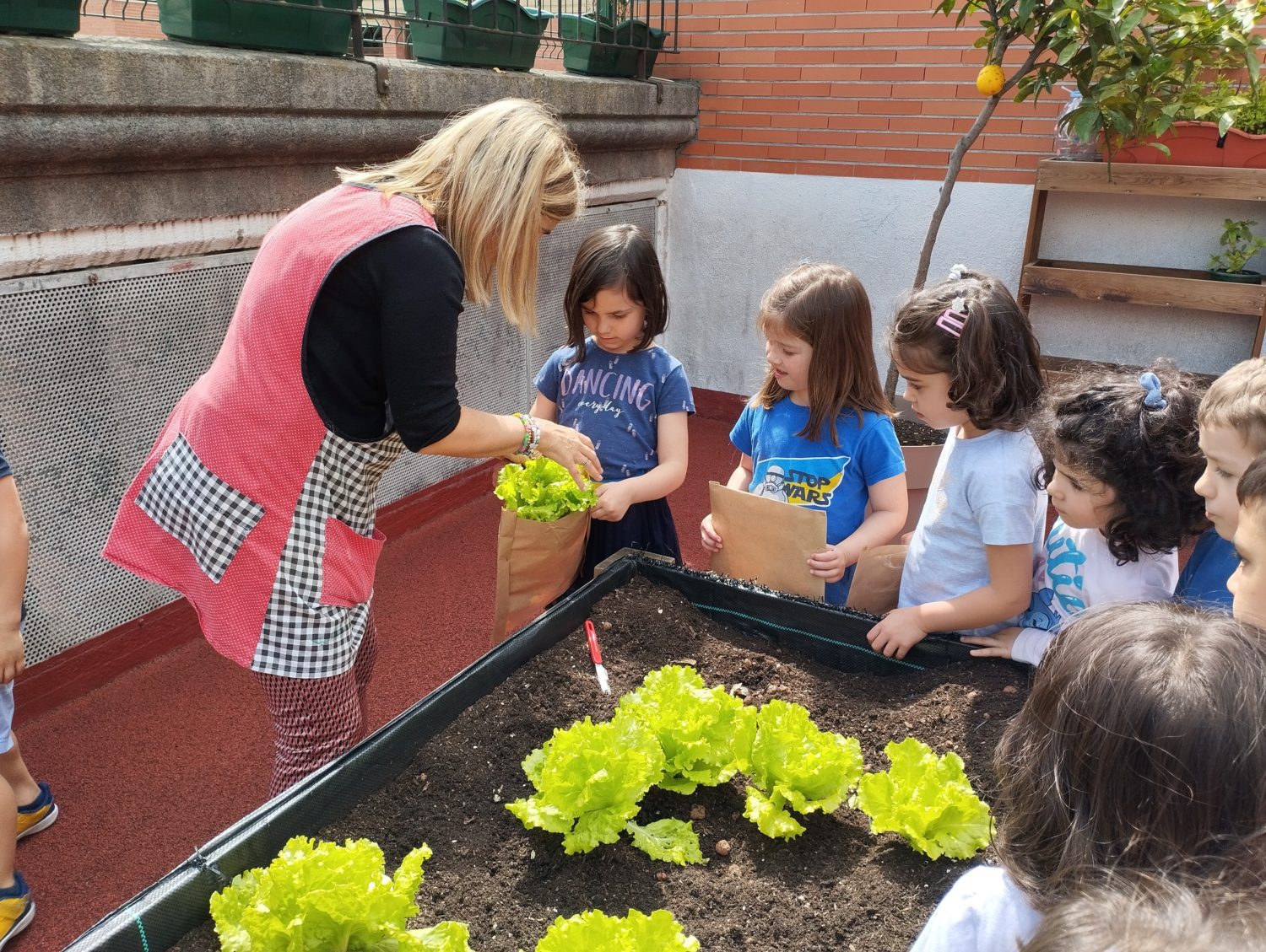 Haur hezkuntzako haurrek ortuko jardueran parte hartu dute letxugak landatu eta zainduz, etxera eraman ahal izateko. Esperientzia polita izan da haurrek etxean entsalada prestatu dutelako familiarekin afaltzeko