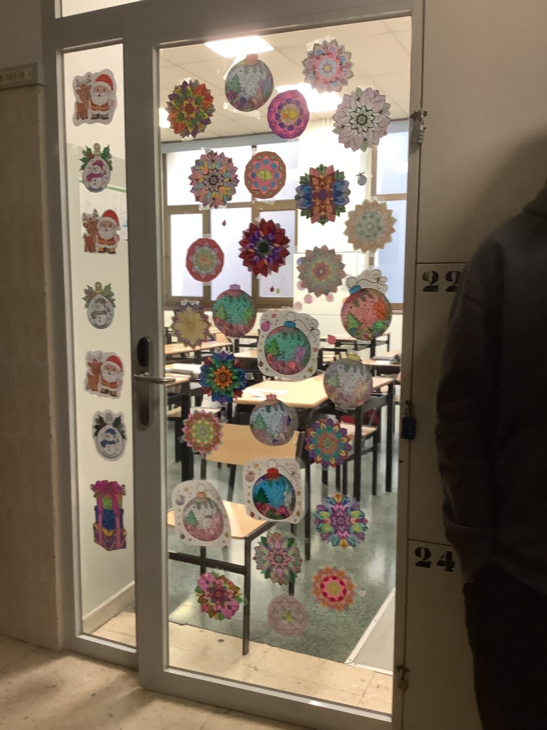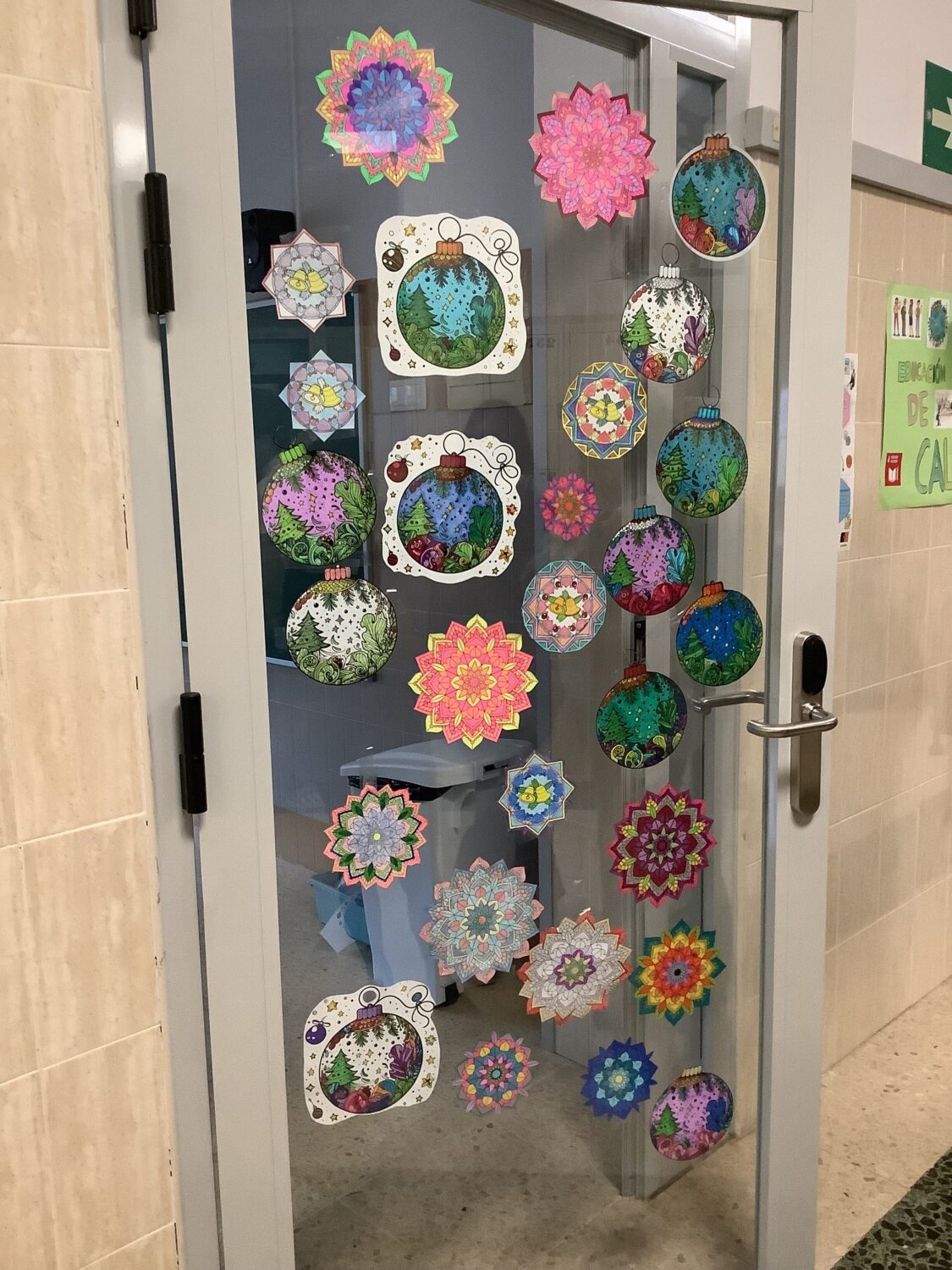Antes de Navidad, el alumnado de 4º de ESO hemos pintado mandalas y las hemos pegado en las puertas de las clases para decorar.