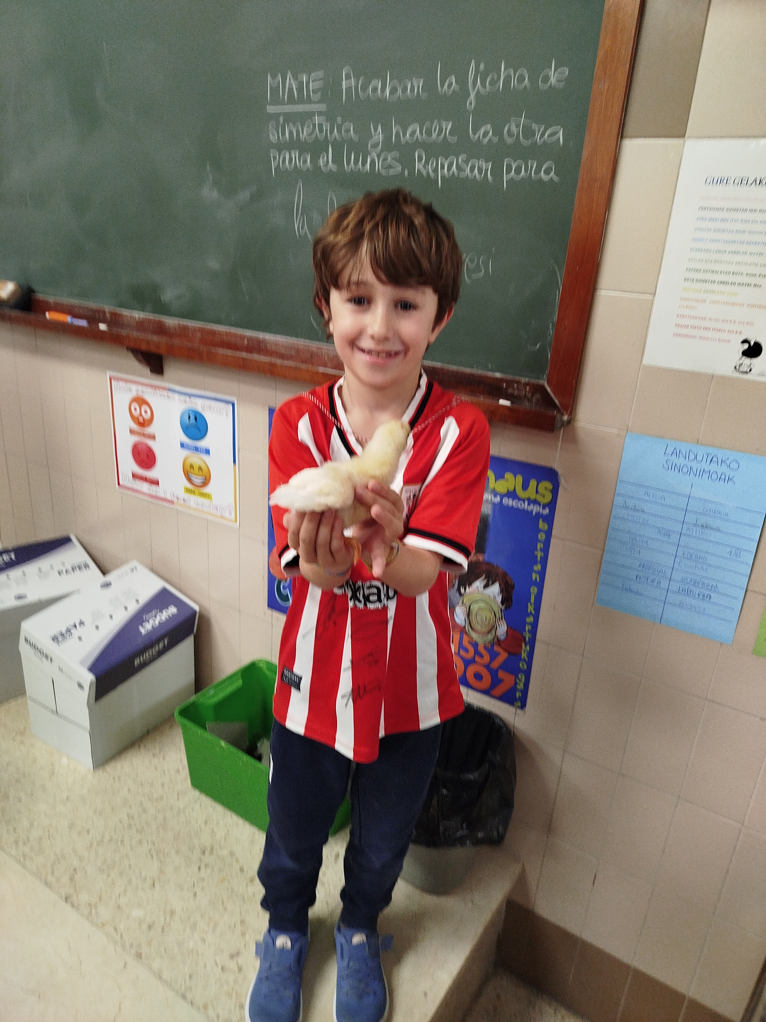 LHko 3. eta 4. mailako ikasle guztiak 8ko taldeetan pasatu dira, eta Lucasek prozesu osoa eta inkubagailua zer den azaldu du. Gero interes handiz itxaron dugu eta azkenean ikusi dugu nola jaiotzen ziren gure oilaskoak. Denak izan dira zorionez babestuak. Asko ikasi dugu prozesuaz eta gozatu dugu bere jaiotzarekin eta eskolako lehen egunekin.