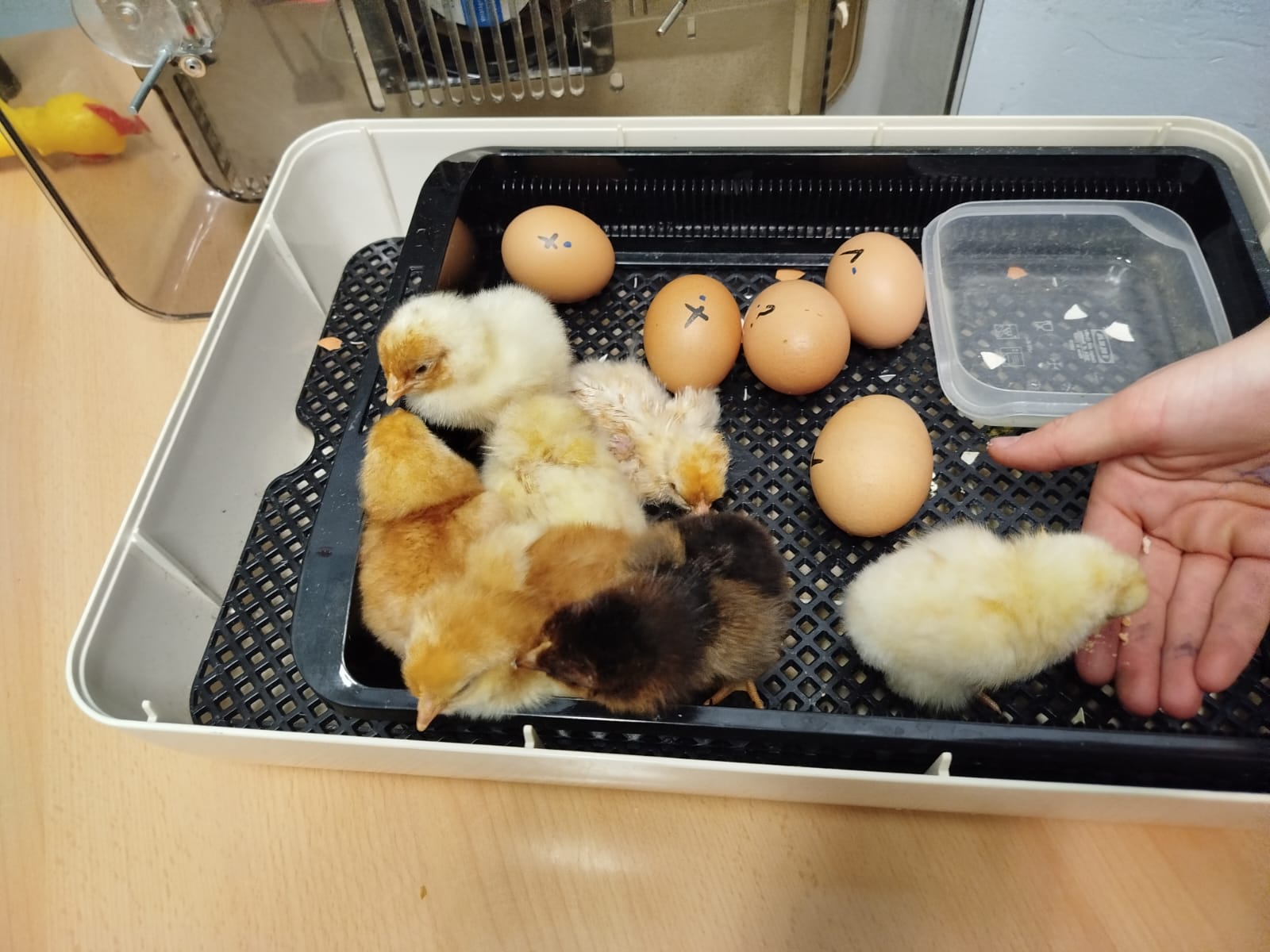 Todo el alumnado de 3º y 4º LH ha pasado en grupos de 8 y Lucas ha ido explicando todo el proceso y qué es una incubadora. Después hemos esperado con mucho interés y por fin hemos visto cómo nacían nuestros pollitos. Todos han sido felizmente apadrinados. Hemos aprendido mucho del proceso y hemos disfrutado también con su nacimiento y sus primeros días en el colegio.