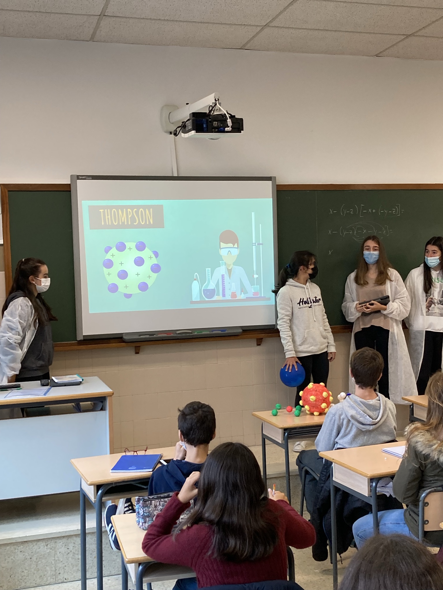 Horrez gain, eta esan dezakegunez kontzeptu berri bat besteei azaltzen dakigunean barneratuta dagoela, 4. DBHko ikasleak eraman ditugu 2. mailako ikasleen aurrean eredu atomikoen maketak azaltzera.